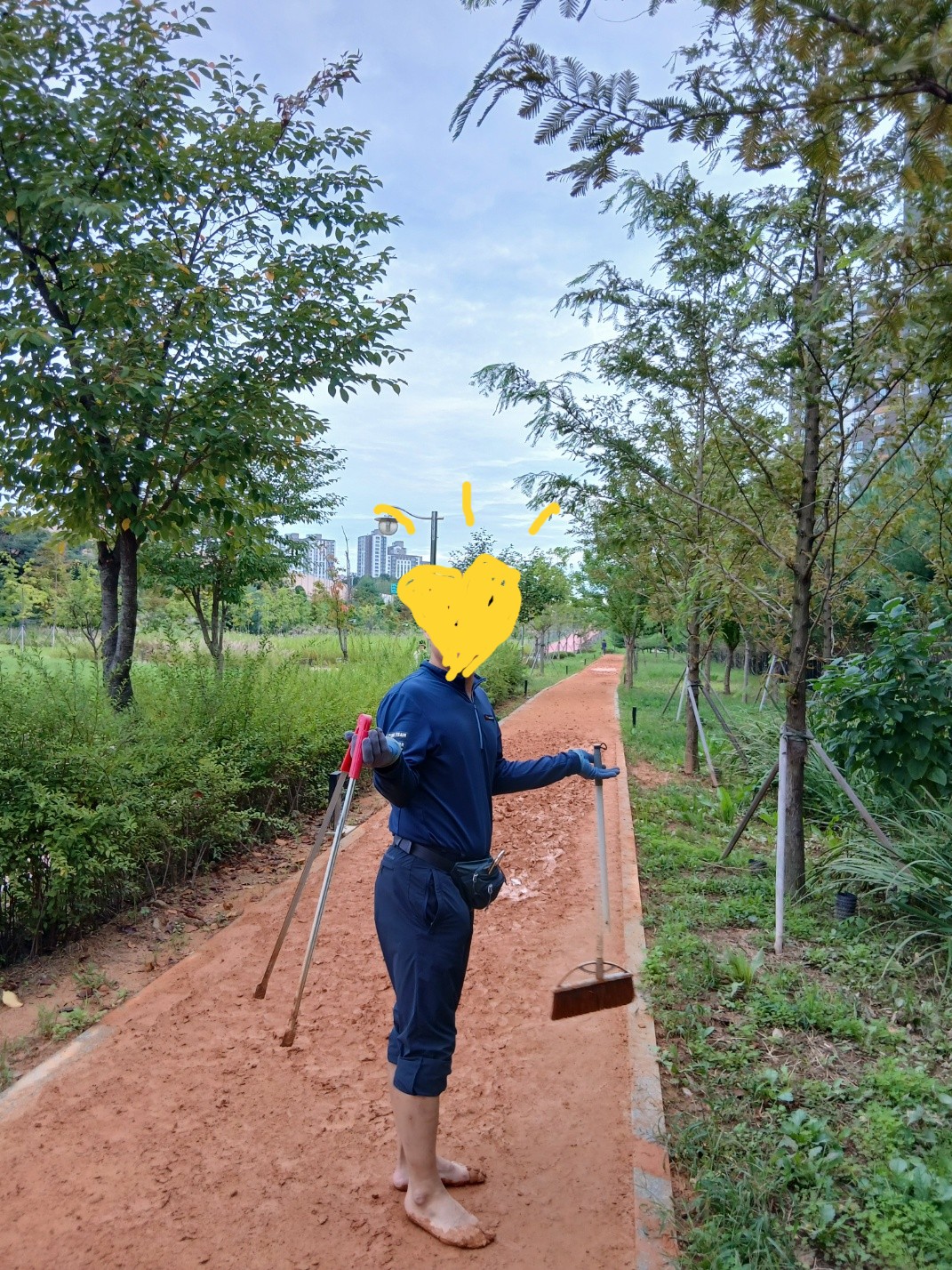 비가 오는 날도 나오셔서 땅이 꺼진 부분이나 나뭇잎이 떨어져 더러워진 길을 정리해주십니다. 보상도 없이 모두를 위해 희생해주셔서 너무 감사합니다. 덕분에 깨끗한 황토길을 걸을 수 있습니다. |
