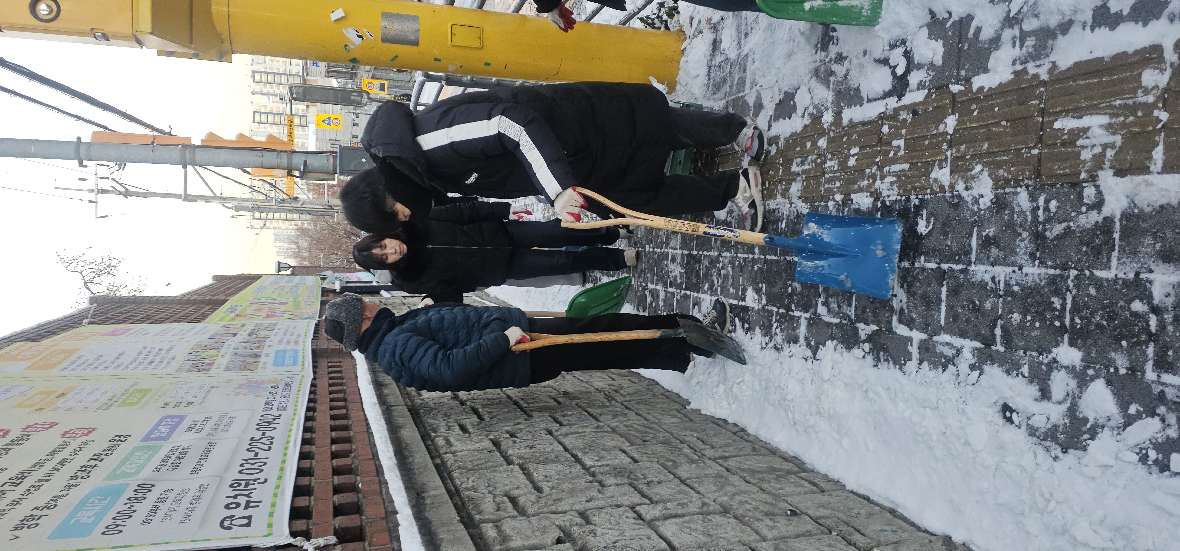 언덕길 많은 세류3동에 세류3동 팀장님들과 주무관님들, 권선구청의 팀장님도 오셔서 새벽부터 총 출동하셔서 제설제 뿌리고 삽으로 눈 다 치우시고 덕분에 안전한 통행로를 확보했습니다. 세류3동 복지팀장님은 새벽부터 골목울 도시며 어디가 얼었는지 다 확인하고 가시더라구요.